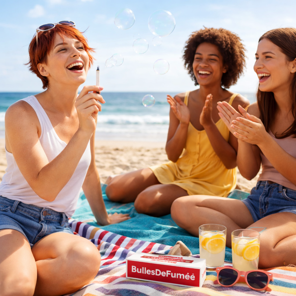 Tu tires une fois et tu souffles – mais au lieu de fumée, des bulles de savon flottent soudain dans l’air. La réaction ? D’abord la surprise, puis les rires, puis tout le monde veut essayer. Tu deviens ainsi la star de la soirée.